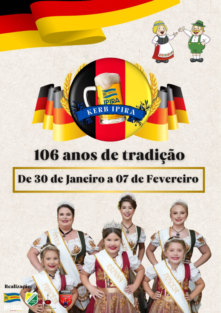 Ipira se prepara para viver mais uma edição de um de seus eventos mais emblemáticos. Entre os dias 30 de janeiro e 7 de fevereiro, o município realiza o 106º Kerb, festa que simboliza a identidade cultural local e mantém vivas as tradições de origem germânica, aliadas ao espírito comunitário e à celebração popular.